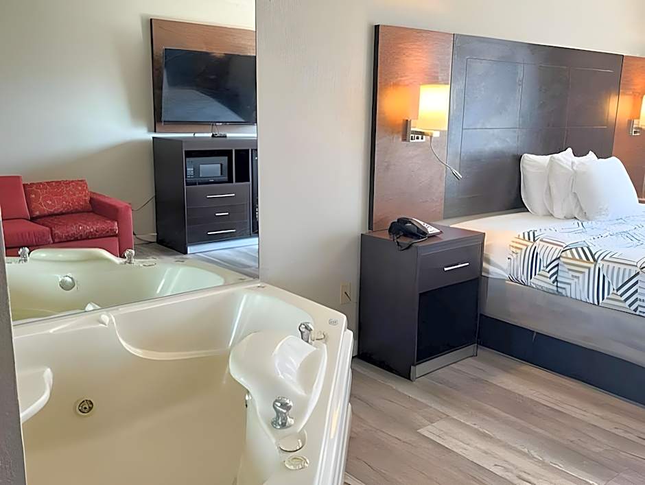 Free WiFi keeps devices connected, and pets can stay for free, perfect for traveling with four-legged companions. On-site private parking is complimentary, and air conditioning helps stay comfortable. A hot tub and a bathtub provide a relaxing spot to unwind after a day exploring Tulsa.