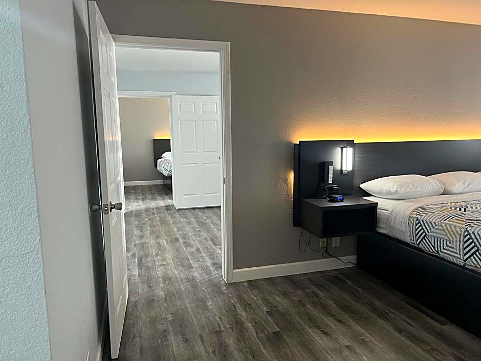 Ample parking. Not a lot of traffic past the property. Fresh renovation on the room. Big TV. Affordable.