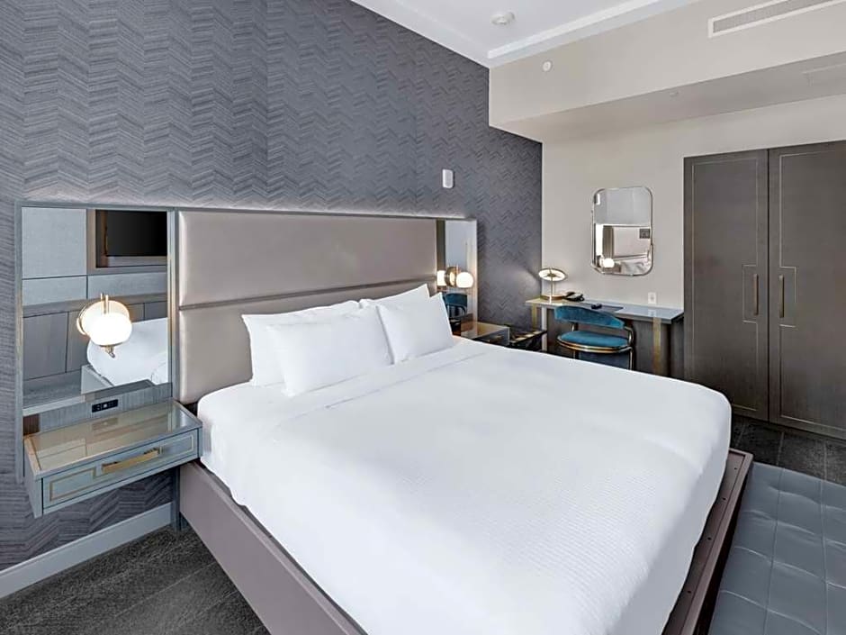 The hotel offers a range of rooms including suites and standard rooms. The suites include the Deco Queen Suite, Deluxe King Suite, Deco King Suite, King Suite with Hearing Accessibility, and King Premier Room. The standard rooms include the Premier Queen Room with Two Queen Beds and the Queen Room. All rooms have non-smoking policy. The bed sizes vary from Queen to King, and the rooms can accommodate between 2 to 4 adults and 1 to 3 children.
