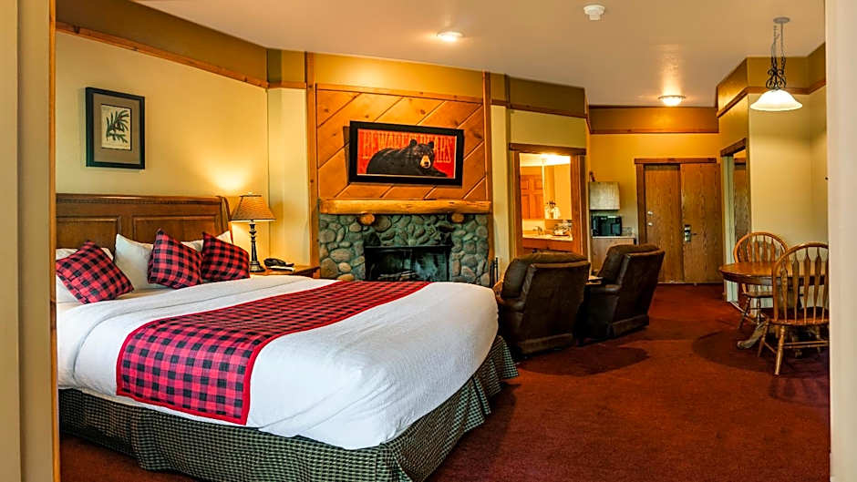 Feeling a bit more pampered? Many of the luxurious room options, like the Mountain View Suite or the King Valley View with Fireplace, feature jetted tubs—perfect for a soothing soak after a day on the slopes or a stroll through the mountain air. All rooms are designed for comfort, with plush beds and calming decor that invite you to unwind and recharge, whether you're here for a romantic retreat or a fun-filled family getaway. And with options ranging from single rooms to spacious multi-bedroom suites, there’s a perfect space to fit your style and needs.