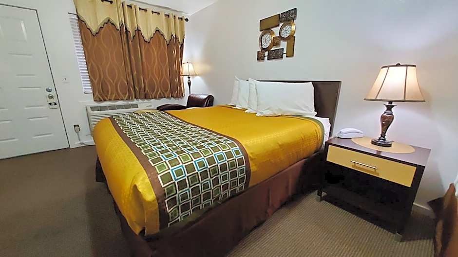 The room was clean and spacious. The AC unit worked well throughout my stay. The bathroom was cleaned thoroughly and well stocked. The noise outside was minimal and curtains did a good job of keeping the light levels low.