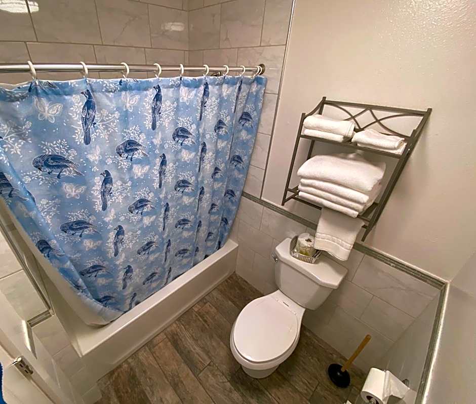 Motel West was an older property, but well maintained. It was located on a busy street, and motel had several guests but rooms were quiet. Bathroom appeared to be updated. Towels were thick and fluffy. Good water pressure in shower. Bed sheets were clean and crisp. Comfortable bed. Good size fridge kept food cold or frozen. Housekeeping was top notch.