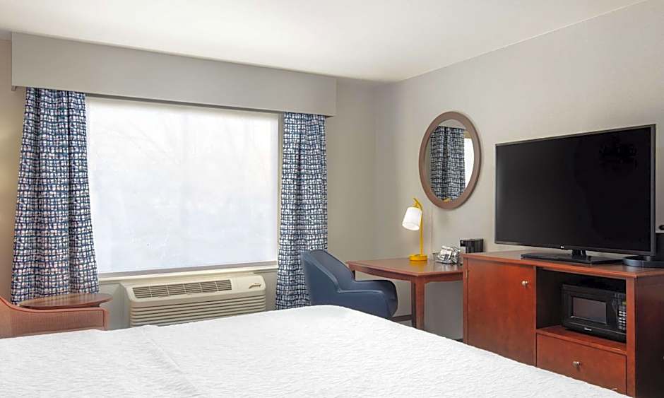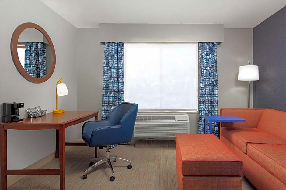 Sofa bed, free WiFi, 32-inch LCD TV, work desk, coffeemaker, shower Stretch out in this non-smoking guest room which features our clean and fresh Hampton king bed®, a convenient sofa bed, and a 32-inch LCD TV. Catch up on work at the large desk with ergonomic chair, or surf the web with free WiFi access. Refresh in the bathroom which has a WaterPik showerhead and curved shower rod that allows more light and space in the shower.