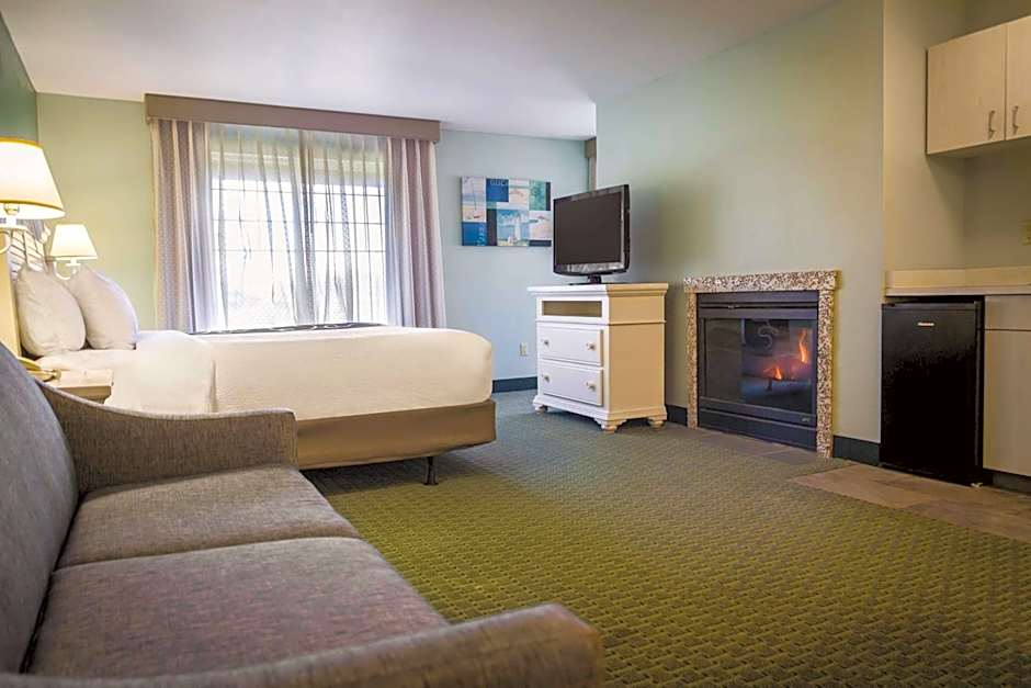 In addition to the mentioned amenities, the hotel also features a fireplace, which creates a cozy ambiance and adds to the overall comfort of the guests' stay.