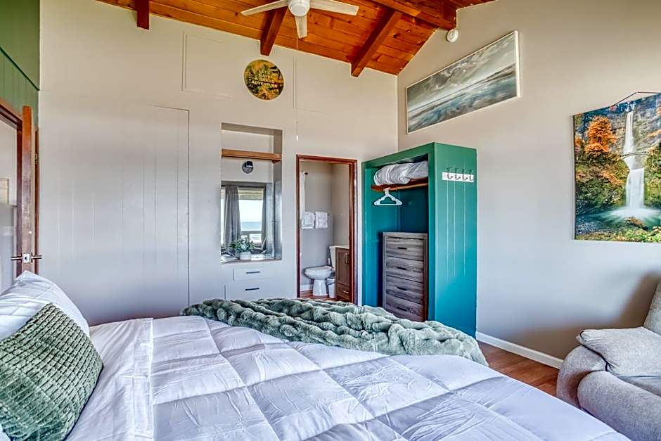 Everything! We loved it so much we extended our stay which allowed us to stay in two different rooms. Our first room, The Marlyn Monroe room, had a side deck with an open view to the beach and ocean. It had a small sitting area with a comfy couch and small beverage station with plenty of coffee and a fridge as well as dining plates, cups, and utensils. Bed was comfy with a very cozy blanket. All rooms have easy access to the stairs leading down to an amazing beach. Our 2nd room was the Hunters room, which is really a small apartment as it had a king bedroom, a full kitchen with a high top dining table, a living room, and a large deck overlooking the beach. This room had full-on view of the beach and ocean from every room. While Maryln was great, if you are looking for an extended stay, book the king rooms. On top of all this, Peggy and the staff are wonderful hosts. Just north of Newport and south of Depoe, food and activity options were a short drive away. We took out several nights to eat on the balcony to watch the ocean and sunset. Finally, the beach is amazing. I think it is the last quiet beach in America! Highly recommend this place!