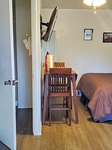 We didn't get the room we booked. I'm not sure if that's the motel's fault or Booking.com's fault. But it was a little disappointing to pick a room that said it had a table and chairs for dining (and included pictures on here of those items) and then be told at the motel that they don't offer them. So we had a kitchenette, but nowhere to sit and eat other than the beds. It made it kind of awkward. The room also could have been cleaner, especially the bathroom.