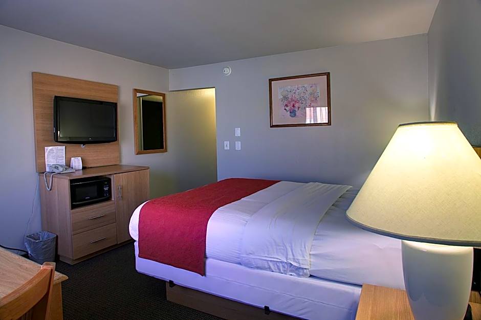 The Aladdin Inn and Suites offers three types of rooms. The Queen Room is a double room with a Queen size bed, suitable for 2 adults. The Queen Room with Two Queen Beds is a family room with two Queen size beds, accommodating 4 adults and 2 children. There is also a Queen Room with Two Queen Beds and a Kitchen, providing additional space for a family of 4 adults and 2 children, and all rooms are non-smoking.