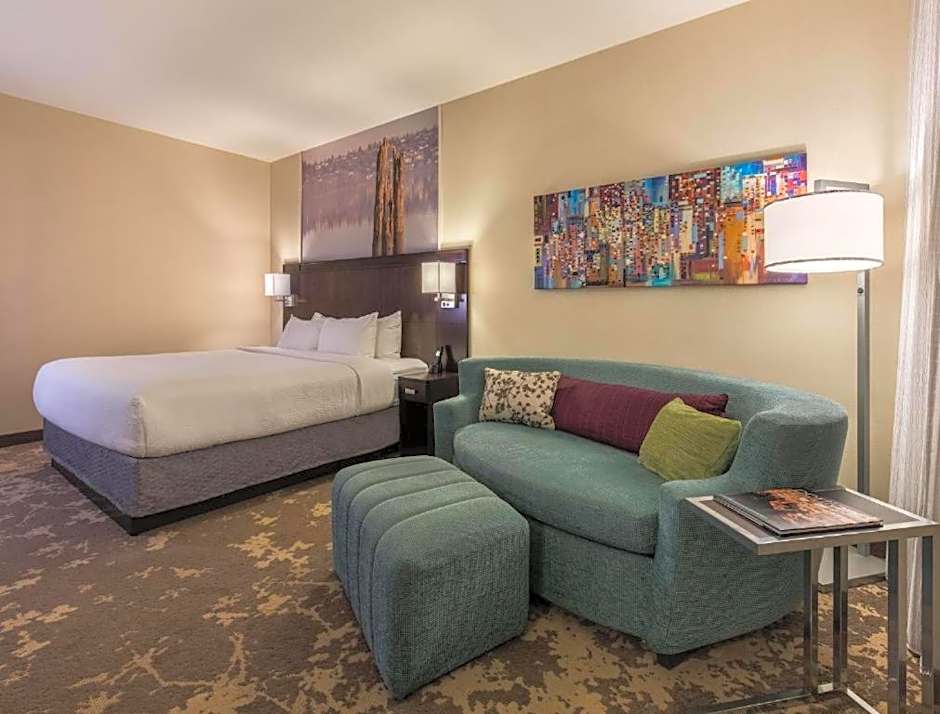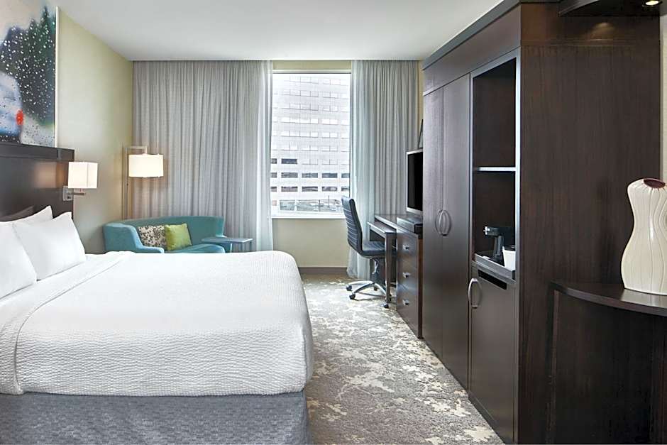 Choose from a variety of comfortable and spacious room types at the Courtyard by Marriott Portland City Center. From the King Room with a cozy sofa bed, perfect for accommodating three adults, to the Queen Room with Two Queen Beds, ideal for a family of four, each room is tastefully decorated and designed to provide the utmost comfort. With amenities such as air conditioning, free toiletries, and stunning views, you're guaranteed to have a relaxing and enjoyable stay at this centrally located hotel.