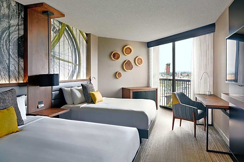 When it comes to dining, the hotel offers two on-site restaurants. The Proof•Reader Whiskey + Craft + Kitchen is a family-friendly restaurant with a modern ambiance, serving American cuisine. Alternatively, guests can visit the Press Release Coffee + Food restaurant, which has a modern ambiance and also serves American cuisine. These dining options provide guests with a variety of choices to suit their preferences while staying at the hotel.