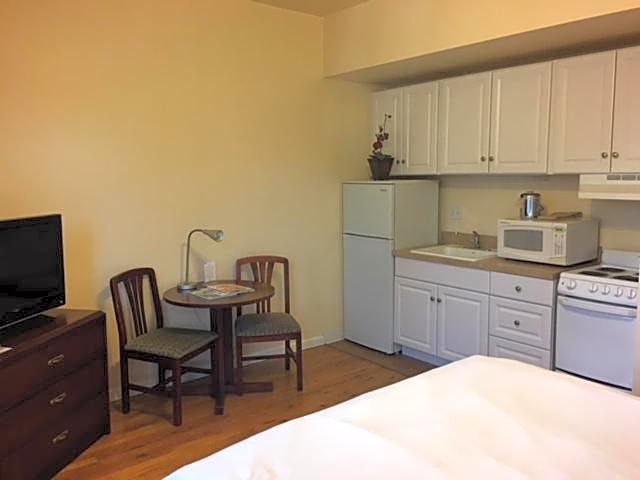 I loved staying here. I booked a one room one bed. And they provide everything for you in your little studio. Pots and pans, dishes, silverware, utensils and they even provide a dish rack and dish soap. It was like at home away from home. It made me and my husband feel like we lived in Porland!