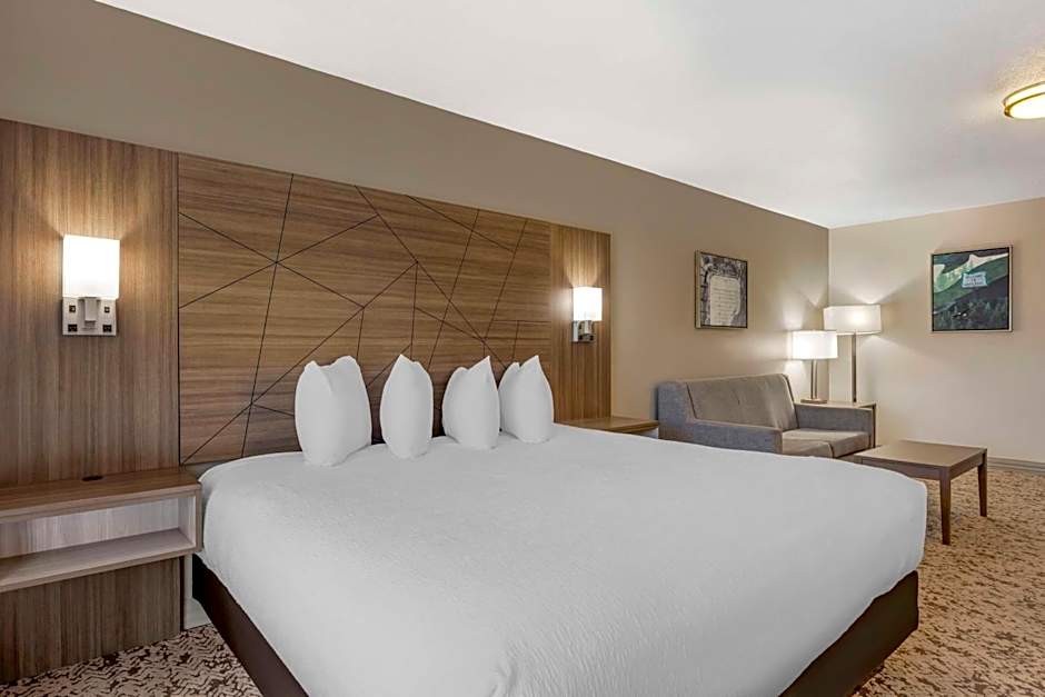 The Best Western Grand Manor Inn offers a variety of room types including Oversize King Room, Queen Room with Two Queen Beds and Roll-In Shower, King Room with Two King Beds, and Queen Room with Two Queen Beds. All rooms are non-smoking and have different bed sizes ranging from King to Queen. The rooms can accommodate either 2 adults and 1 child or 2 adults and 3 children. Some rooms also have balconies.