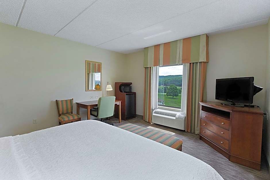 32-inch HDTV, sofa bed, work desk, microwave, mini-fridge, free WiFi access Enjoy extra space and comfort in this guest room which offers one king-sized clean and fresh Hampton bed®, plus a comfortable sofa bed to sleep an extra guest. Stay entertained with a variety of movies and channels on the 32-inch HDTV. Business amenities include a large work desk and free WiFi access. Refresh in the bathroom with a WaterPik showerhead and fluffy towels. This room also offers a handy coffeemaker to help you feel at home.