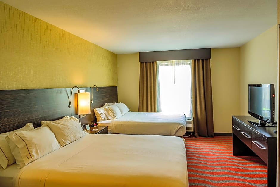 The Holiday Inn Express and Suites - Bradford offers several types of rooms. These include the Deluxe Room with a Queen size bed, the Standard Suite with a Queen size bed, the Queen Room with Two Queen Beds, the King Room with a King size bed, the Suite with Two Beds with Double beds, the Feature King Room with a King size bed, the King Room - Hearing Accessible, and the Room Selected at Check-In with a combination of King and Queen size beds. All rooms have a size of 323 sqft and are non-smoking. Occupancy ranges from 2 adults and 1 child to 5 adults and 4 children depending on the room type.