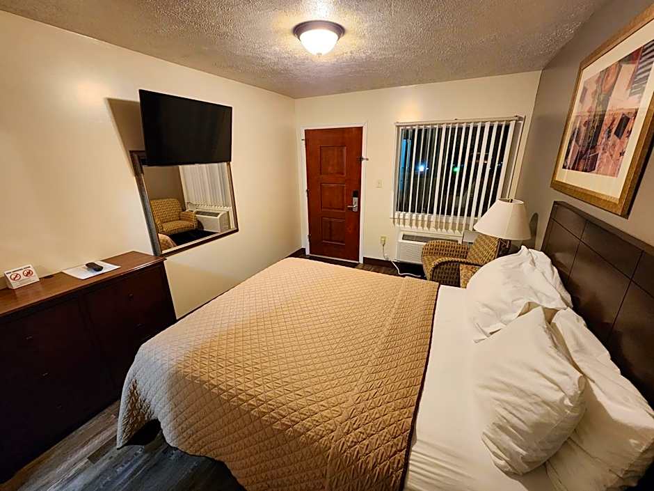 The landscaping pulling up the motel was greatly maintained and beautiful! Loved our stay here, the woman in the office was very nice and a good conversationalist! Rooms were great, clean, a/c worked great against the beaming hot weather. There’s a sitting area outside of each room where you can smoke cigarettes as well as just hang out! The owners & staffing have put so much thought and consideration into this place that I would definitely return if I’m ever in the area again. It was very homey and welcoming!