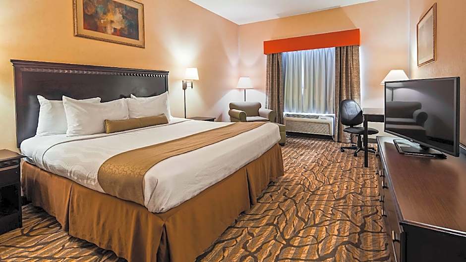 The Best Western Danville Inn offers a variety of room types including Double Rooms with Two Double Beds, King Rooms, and King Suites. All rooms have a size of 344 sqft and do not allow smoking. The occupancy varies, with some rooms accommodating 2 adults and 1 child, and others accommodating 4 adults and 2 children. The bed size in all rooms is a King size bed, except for the Double Rooms which have two Double beds.