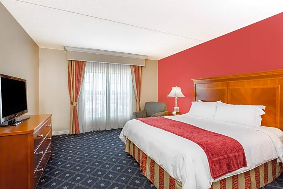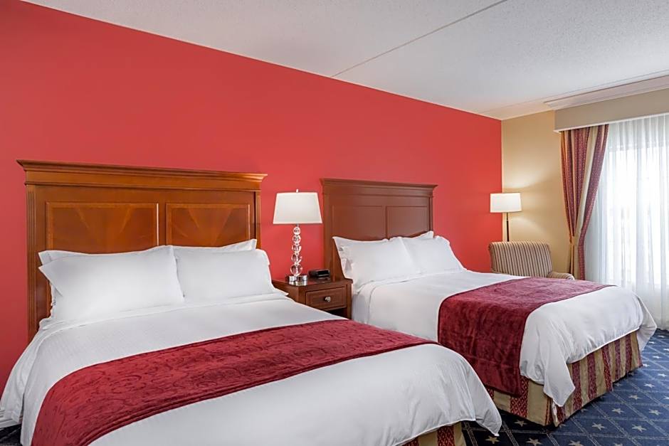 Rooms at the Wyndham Gettysburg include King Rooms, Queen Rooms with Two Queen Beds, and a King Room specifically designed for those with hearing impairment and mobility access. All rooms are non-smoking and range in size from 355 sqft to 398 sqft. The King Room accommodates up to 3 adults and 2 children, while the Queen Rooms with Two Queen Beds can accommodate up to 6 adults and 4 children.
