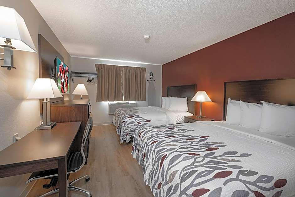 The Red Roof Inn Greensburg offers Superior King Rooms that are smoke-free and can accommodate 2 adults and 1 child. These rooms have a spacious size of 258 sqft and feature a King size bed. The hotel also provides Deluxe Queen Rooms with Two Queen Beds that are smoke-free, have a room size of 258 sqft, and can accommodate 4 adults and 3 children. These rooms have 2 Queen size beds.