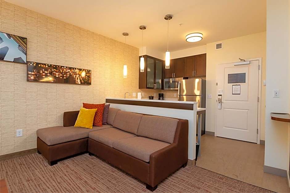 The hotel offers One-Bedroom Queen Suites, King Studios, and King Studios with a Sofa Bed. The One-Bedroom Queen Suite is a suite with a size of 484 sqft and can accommodate 6 adults and 5 children. The King Studios have a size of 334 sqft and can accommodate 4 adults and 3 children. All rooms are non-smoking and have either queen or king size beds.