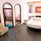 We didn't like how the lighting was in the room, very dark! They have a small refrigerator in the room but no microwave to heat anything up. Clean room, but very outdated and in need of repairs. The hot tub sprayed water all over because it needs a new faucet. One towel per person for shower and none for the hot tub, nothing extra for sure unless you pay extra.