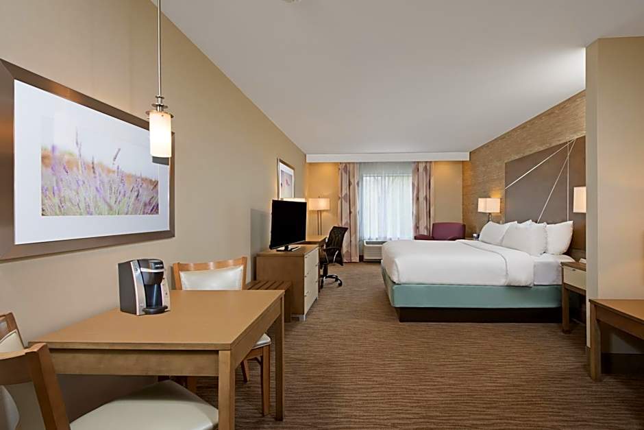 The breakfast was the best I have gotten at a hotel. I had sausage gravy & biscuits, scrambled eggs, & coffee. There were other options including a fresh pancake making machine with a conveyer belt it came off from onto your plate. The room was clean, bed comfy, & AC cranked at 64 degrees when we walked in the room. It also has a Keurig machine in the room, microwave, fridge/freezer, & iron with ironing board.