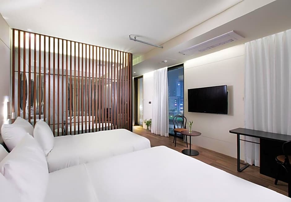 This twin/double room's special feature is the hot tub. The twin/double room includes a private bathroom, well-fitted with a bath, a shower, a bidet, a hairdryer and slippers. The twin/double room provides air conditioning, soundproof walls, a wardrobe, a safe deposit box and a flat-screen TV. The unit offers 2 beds.