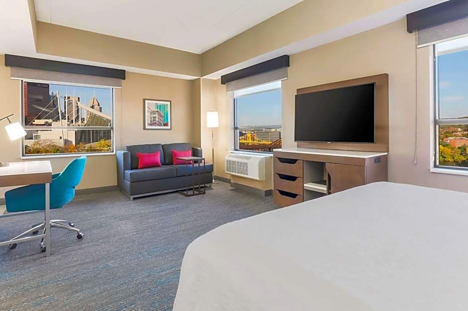 Indulge in the perfect combination of comfort and luxury at the Hampton Inn & Suites Pittsburgh Downtown. With spacious, soundproof rooms offering stunning views of the city or the river, you'll feel right at home from the moment you step foot into your room. Each room is equipped with modern conveniences such as air conditioning, free WiFi, and a private bathroom. Whether you choose a Standard King Room or a Queen Studio Suite, you'll find a cozy refuge to relax and unwind after a long day of exploring Pittsburgh.