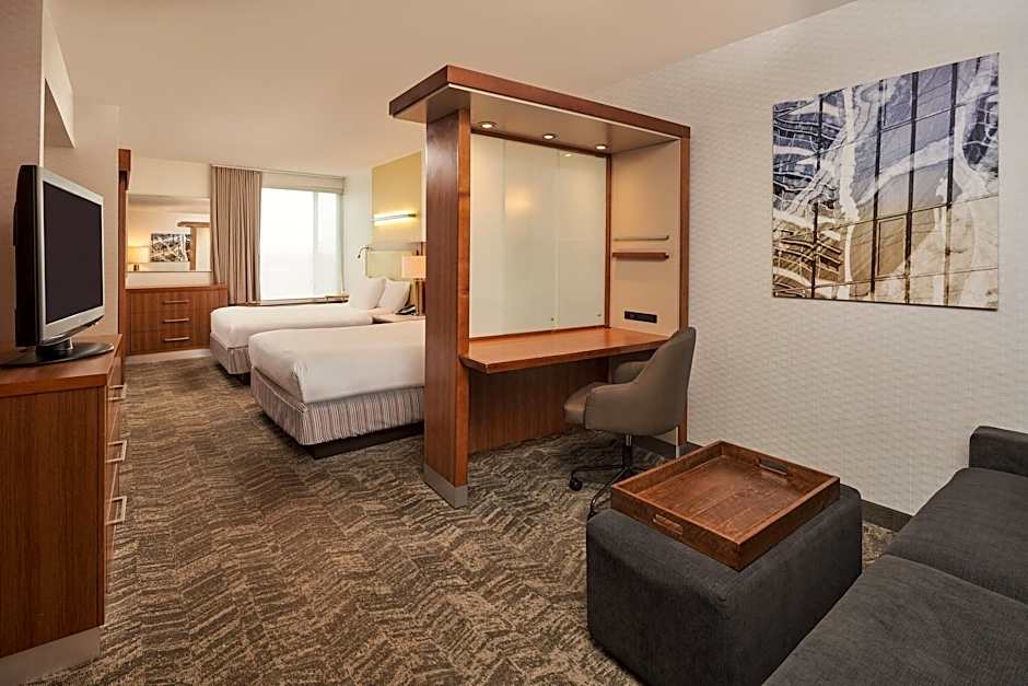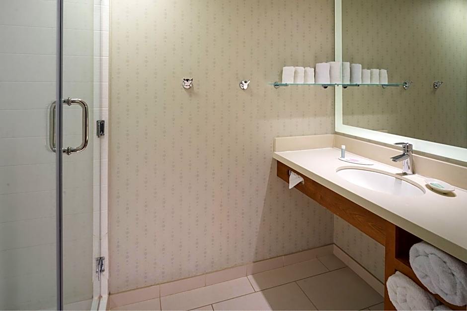 At the SpringHill Suites by Marriott Philadelphia Airport / Ridley Park, there are three types of rooms available. The Queen Suite with Two Queen Beds can accommodate up to 5 adults and 4 children, has a king size bed and a sofa bed, and does not allow smoking. The King Suite can accommodate up to 3 adults and 2 children, has a king size bed and a sofa bed, and also does not allow smoking. There is also a King Suite with Sofa Bed and Adapted Tub - Mobility Accessible, which has the same occupancy and bed setup as the King Suite, but offers accessibility features in the bathroom.