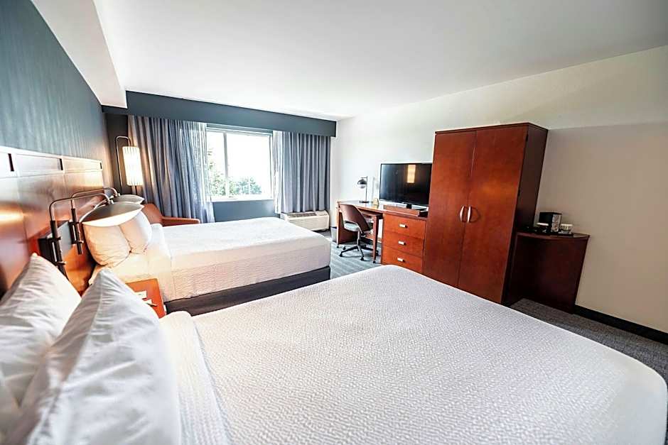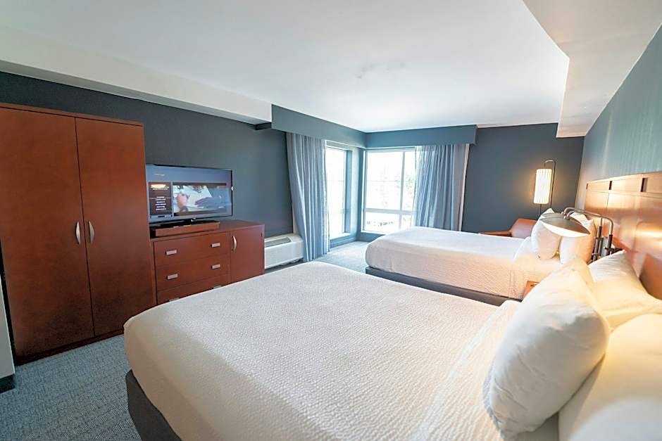 The Courtyard by Marriott Philadelphia Springfield offers King Rooms with Sofa Beds and Queen Rooms with Two Queen Beds. The King Room with Sofa Bed has a room size of 334 sqft and can accommodate 3 adults and 2 children. It features a king-size bed and a sofa bed, and smoking is not allowed. The Queen Room with Two Queen Beds has a larger room size of 377 sqft and can accommodate 4 adults and 3 children. It also does not allow smoking and features two queen-size beds.