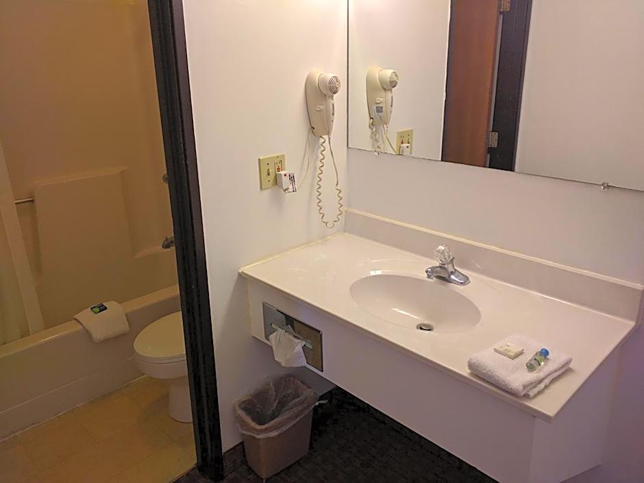 This features a seating area, air conditioning and microwave. This guestroom also includes: -Accessible guests rooms with mobility features with entry or passage doors that provide 32" of clear width. -Accessible parking. -Accessible public entrance. -Accessible route from the accessible public entrance to the guest rooms, registration area. and breakfast area. -Alarms-visual strobe. -Bathroom and bedroom doors at least 32 inches wide(812mm). -Braille room numbers. -Closed captioning on television or closed captioning decoders. -Grab bars in bathroom. -Level or ramp entrance into the building. -Lower clothes rack. -Lowered light switches. -Lowered peep hole in door. -Lowered sink. -Rooms accessible to wheelchairs (no steps). -Service support animals welcome. -ITY for guest use in lobby. -Van-accessible parking in the self-parking facility. -Wheelchair ramp for lobby/reception access. Please note this property includes 4 ADA-accessible rooms that are accessible from the ground level via parking and ramping. Additionally, accessible rooms include entrances that are at least 32-inches wide (812 mm).