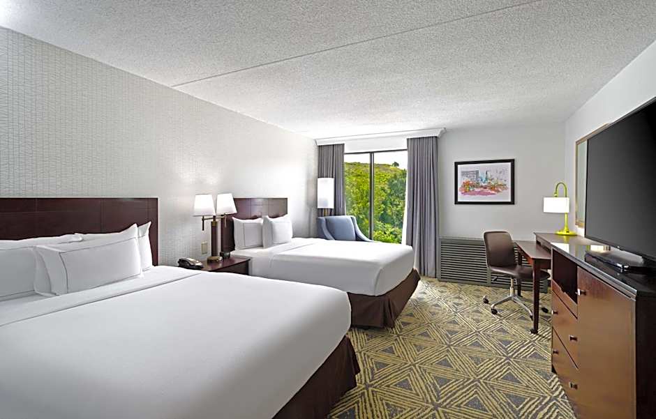 The DoubleTree by Hilton Pittsburgh - Meadow Lands offers a variety of room types, including king rooms, queen rooms, and suites. Rooms range in size from 323 sqft to 603 sqft. All rooms are non-smoking and can accommodate between 2 and 4 adults, with some rooms also able to accommodate children. Bed options include king size beds, queen size beds, and sofa beds.