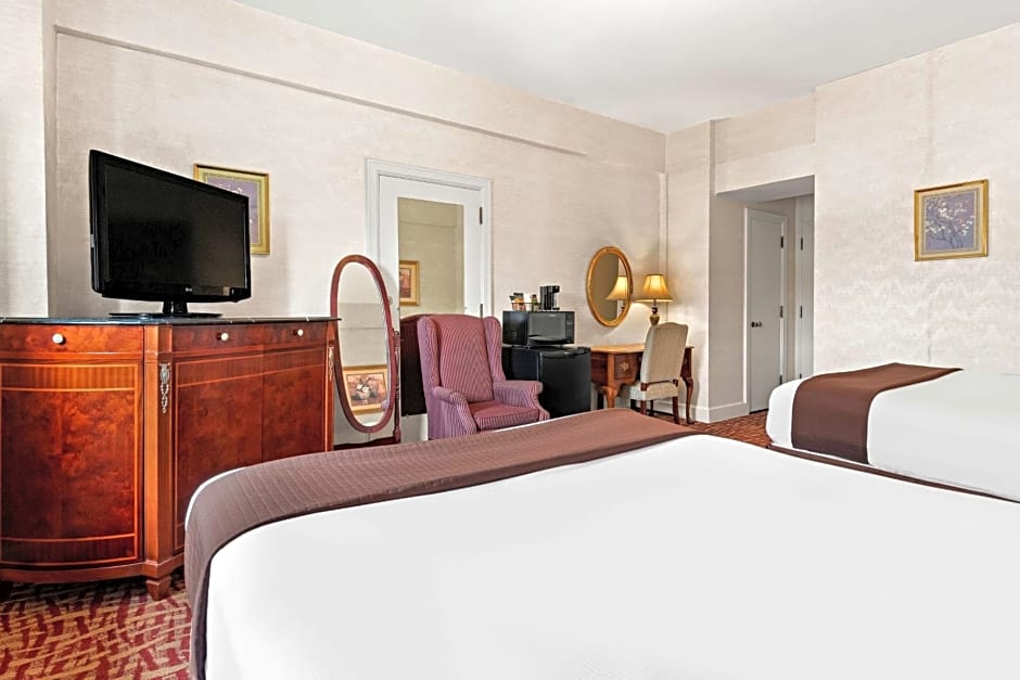The Genetti Hotel, SureStay Collection by Best Western offers a variety of room types including suites, double rooms, queen rooms, and family rooms. Smoking is not allowed in any of the rooms. Accommodations range from 2 adults and 1 child to 6 adults and 4 children. Bed sizes include King, Queen, Double, and Sofa Bed.