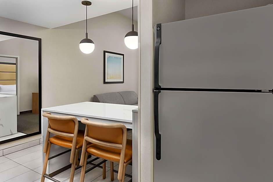 Our Accessible Two-Bedroom Non-Smoking 1 King/2 Queens Suite is perfect when you need more space. Two full-sized bedrooms, one with two queen-sized beds and the other with a king-sized bed and work table; each with closet space, television, and a full-sized bathroom equipped with grab bars. Relax in a separate living area with a full-sized sofa bed, side chair and television. The kitchen, built to lower scale, is fully equipped down to utensils; and includes a full-sized refrigerator, microwave, dishwasher and twin burner stove. Like all of our suites, our Two-Bedroom 1 King/2 Queens Suite keeps you connected with complimentary in-suite high-speed internet access. Plus, you can keep your daily routine with the help of a custom-designed alarm clock featuring a back-up alarm system, MP3 player capabilities and pre-set local radio stations. Any corresponding photo may not reflect the specific accessible room type or room feature.