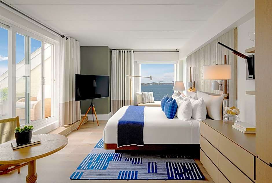 Harbor breezes flutter across terraces, balconies, and gardens, while water sports facilities on site (extra charges) add a splash of fun. The location on Goat Island provides harbor-view moments and easy access to Newport’s waterfront attractions.