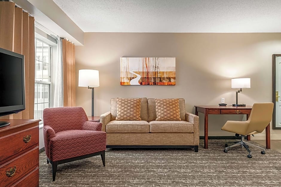 Open plan, living area, full kitchen, dining and work areas, sofa bed, complimentary internet This studio suite features an open plan layout which includes all the comfortable features of home. The spacious suite includes a king-sized bed, a TV, and a full-sized sofa bed. Enjoy the use of a fully equipped kitchen with a full-sized refrigerator, microwave, dishwasher, twin burner cooktop and utensils. Sit down at the dining table and savor a meal or keep on top of business at the work table. Stay connected with complimentary internet access and benefit from a custom-designed alarm clock with MP3 player.
