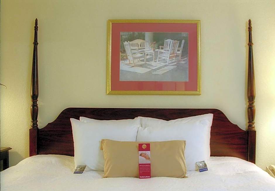 This spacious non-smoking room features a king-sized bed, comfortable sofa that pulls out to a full bed and ottoman, 32-inch flat-screen tv, easy to operate alarm clock/radio and large work surface. The WiFi access will help you stay connected while on the road. If you prefer not to work at the desk, you can use the convenient lapdesk instead. You'll also enjoy the convenience of having a coffeemaker and iron/ironing board in your room. In the bathroom you'll enjoy fluffy towels, a WaterPik showerhead and curved shower rod that allows more light and space in the shower.