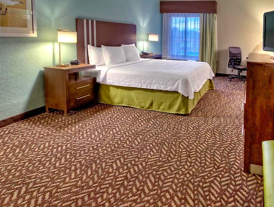 Free WiFi, armchair with ottoman, shower, desk, 32-inch LCD flat-screen HDTV. Make yourself at home in this comfortable guest room, containing a king-sized bed. Stay in touch with friends and family using our free WiFi access, or catch up on some work at the desk. Sit back in the armchair, put your feet up on the ottoman, and watch premium HD channels on the 32-inch LCD TV. Refresh in the shower, or settle down for the night in the clean and fresh Hampton bed®. Other amenities in this room include a microwave, mini-refrigerator, fluffy towels, and a coffee machine.