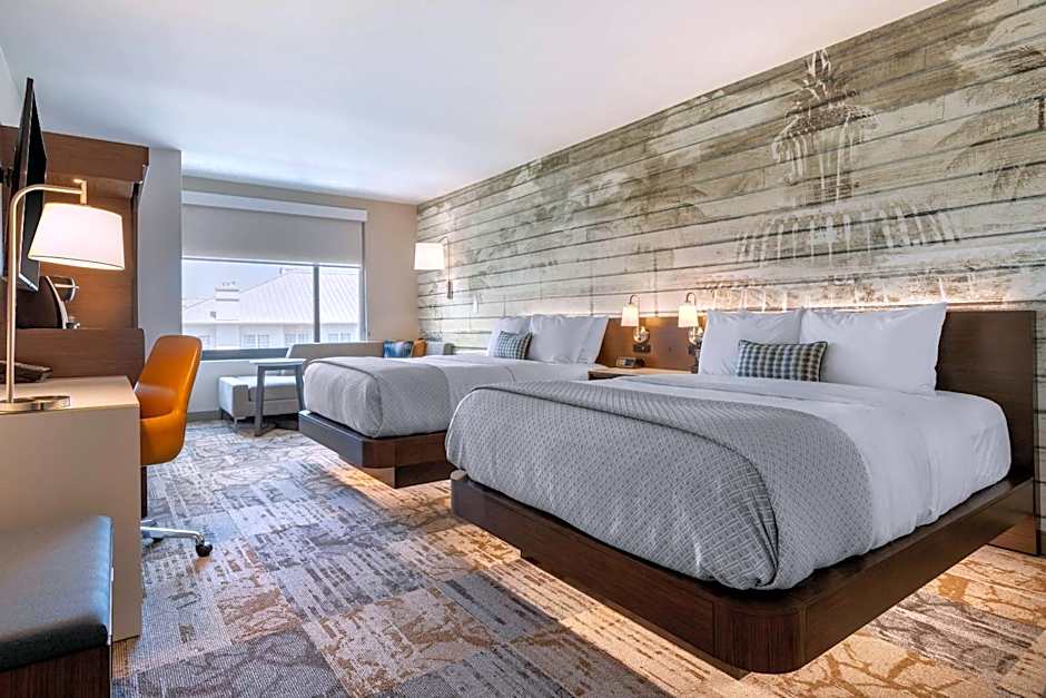 The Cambria Hotel Charleston Riverview offers a variety of room types including Queen Rooms with Bath Tub, King Rooms, Queen Rooms with Two Queen Beds, King Suites with Sofa Bed, and King Suites. All rooms are non-smoking and have a room size of 301 sqft. Accommodations range from double occupancy to quadruple occupancy and bed sizes include Queen and King size beds.