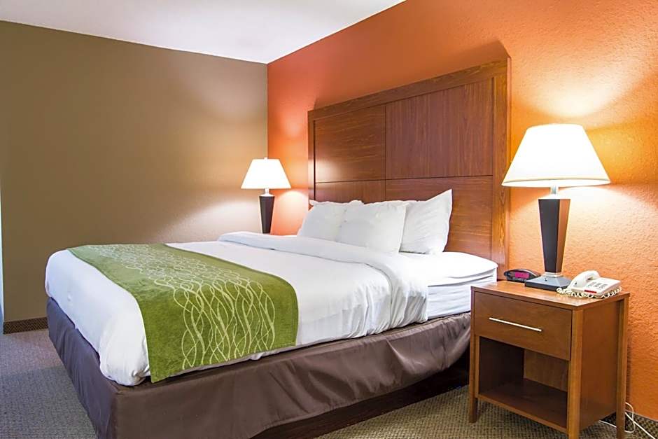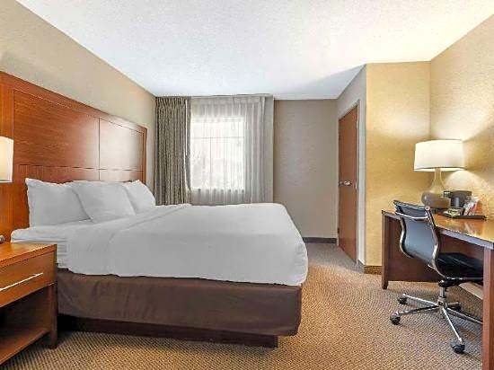 The Comfort Inn & Suites Airport Convention Center offers various types of rooms including suites and double rooms. All rooms are non-smoking and have different sizes, ranging from 355 sqft to 452 sqft. The occupancy of the rooms varies, accommodating either 2 adults and 1 child or 4 adults and 3 children. Bed sizes include a King size bed or two Queen size beds.