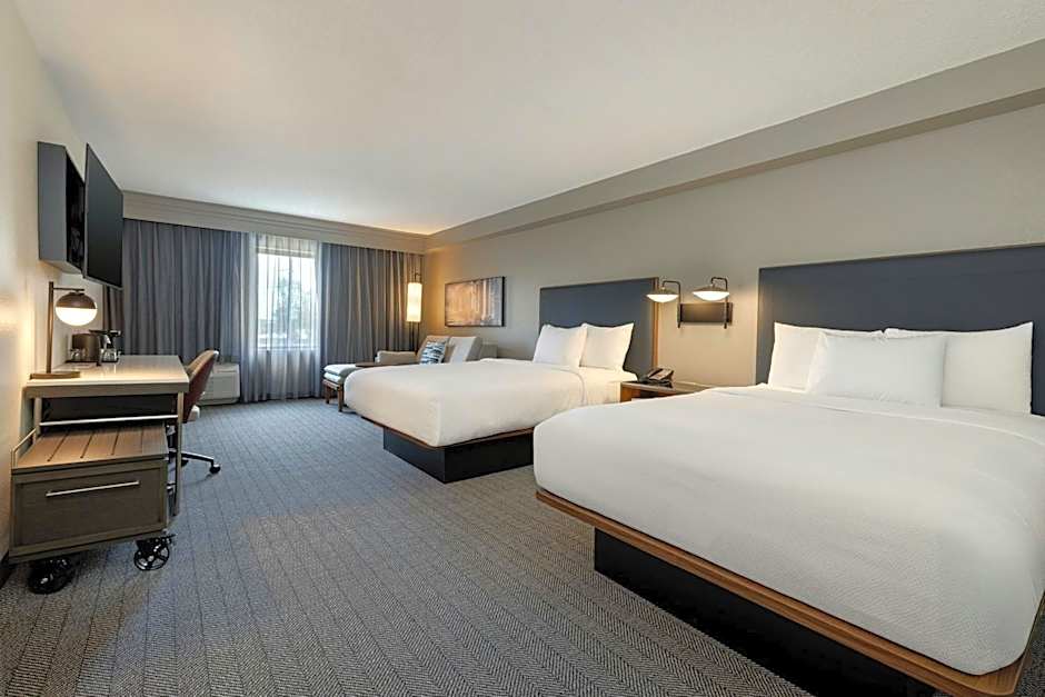 The Courtyard by Marriott North Charleston Airport Coliseum offers a variety of rooms including Queen Rooms with Two Queen Beds, a Queen Room with Sofa Bed, a Queen Room with Two Queen Beds and Adapted Tub, a King Room with Sofa Bed, and a One-Bedroom King Suite. All rooms are non-smoking and have different bed and room sizes. The rooms can accommodate different numbers of adults and children, with the maximum occupancy ranging from 3 adults and 2 children to 4 adults and 3 children.