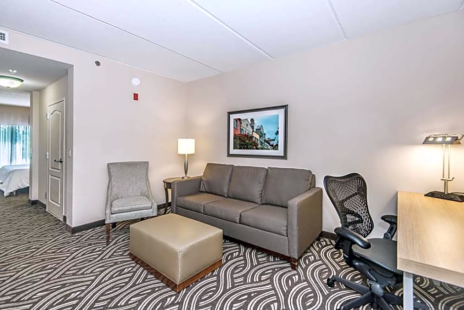 The Hilton Garden Inn Charleston Airport offers a variety of room types including One-Bedroom King Suites, King Suite Mobility/Hearing Accessible with Tub, Queen Rooms with Two Queen Beds, King Rooms, and Two Queen Mobility/Hearing Accessible with Tub. All rooms are non-smoking and have a room size of 301 sqft. The rooms can accommodate different numbers of adults and children, ranging from 2 adults and 1 child to 4 adults and 3 children. Bed sizes include King and Queen.