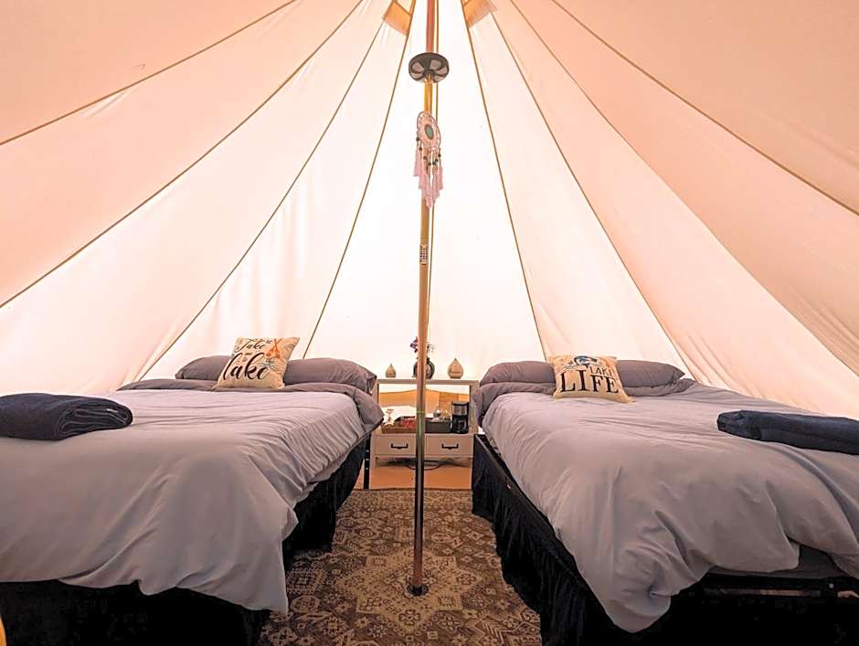 It's not that we didn't like anything, but we could see the property still in transition, which I suppose made us imagine the things that could or would be coming in over time. For instance, a large fountain with a planned fire ring and wooden seating was yet to be completed, and we could see its potential. A single bell tent was a foray into glamping near the shore, but wasn't yet fully set up. One of the smaller docks at the end of the cove was cordoned off as it needed repairs. We could see all the potential and chatted with Jud about this during our stay and look forward to seeing the progress in the future!