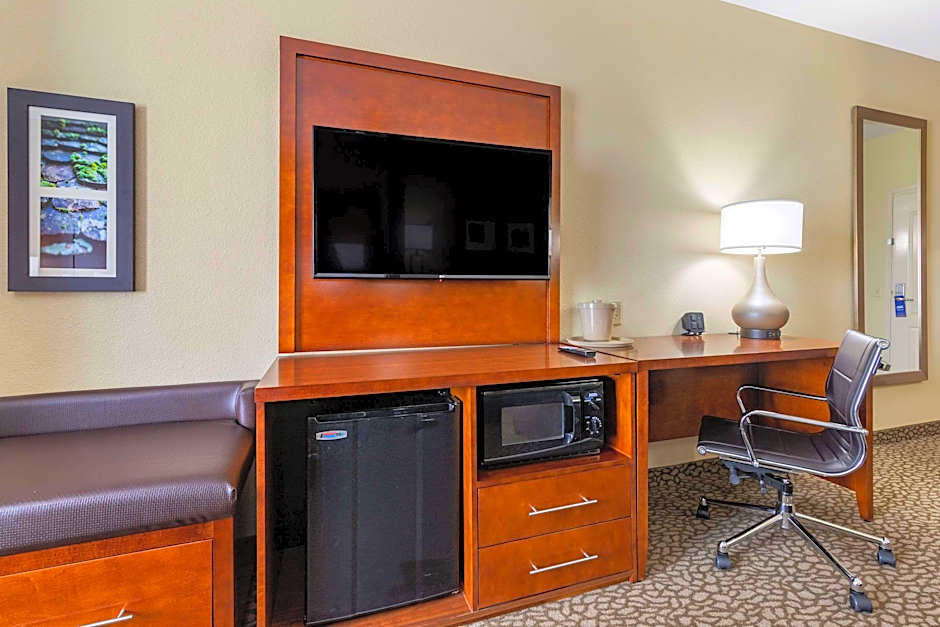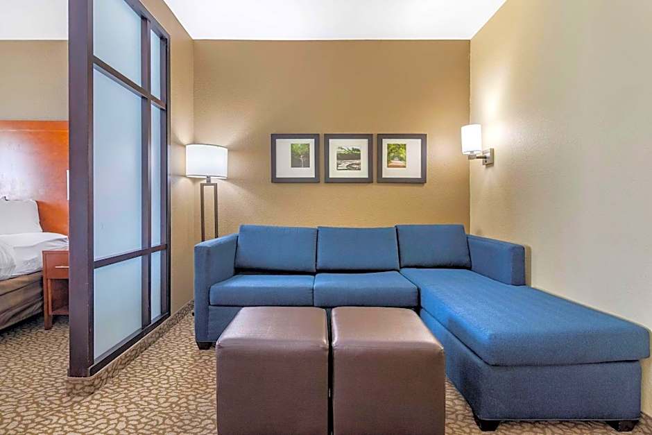The Comfort Suites Florence I-95 offers a variety of suite options. These include Queen Suites with Two Queen Beds and a Sofa Bed, Suites with Two Queen Beds, King Suites with Accessible Tubs, King Suites with Sofa Beds, and King Suites with Roll-In Showers. All rooms are non-smoking and have a size of 355 sqft. The occupancy ranges from 4 to 6 adults, with accommodations for up to 4 children in each room.