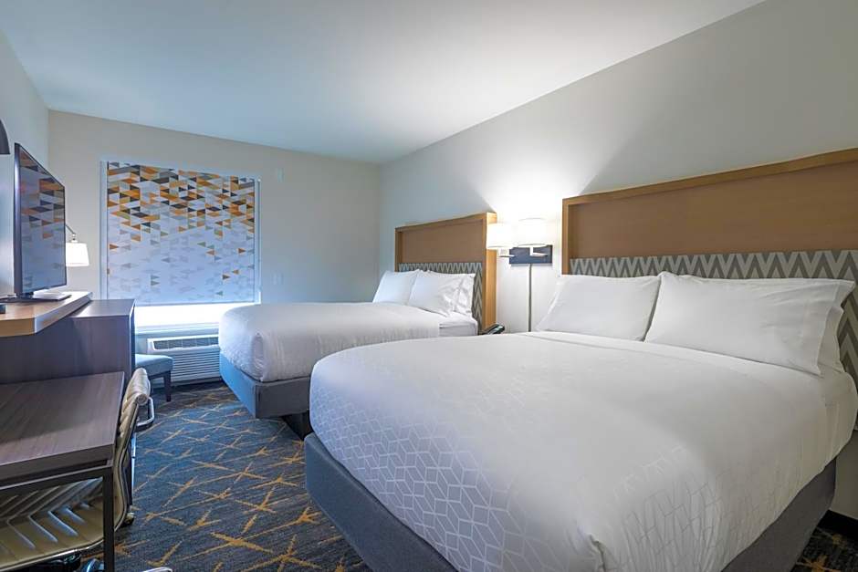 The Holiday Inn Greenville - Woodruff Road offers a variety of room types. These include King Rooms with mobility access and roll-in showers, King Rooms with hearing accessibility and roll-in showers, Standard Rooms with a double bed, and Rooms with Two Beds that are hearing accessible. There are also Queen Rooms with two queen beds, Double Rooms with two double beds and mobility access, Leisure King Rooms, and King Suites. All rooms are non-smoking and can accommodate 2 adults and 1 child, except for the Rooms with Two Beds and Queen Rooms which can accommodate 4 adults and 3 children.