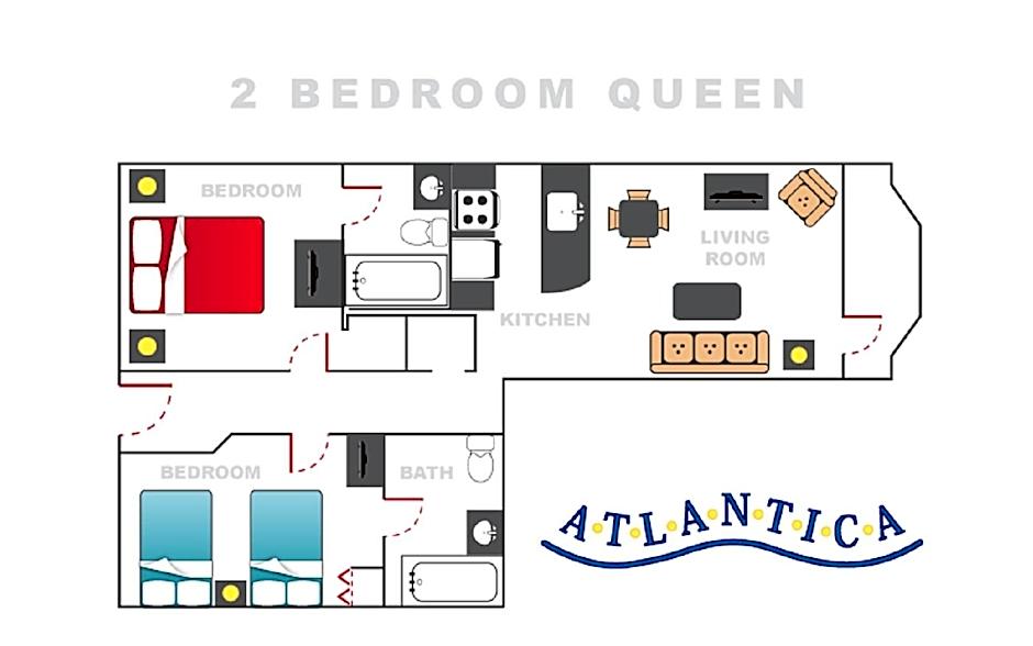 Perfect room size for family of 4 possibly up to 6, good beachfront location in my opinion close to the pier and activities for kids everything is a good walking distance