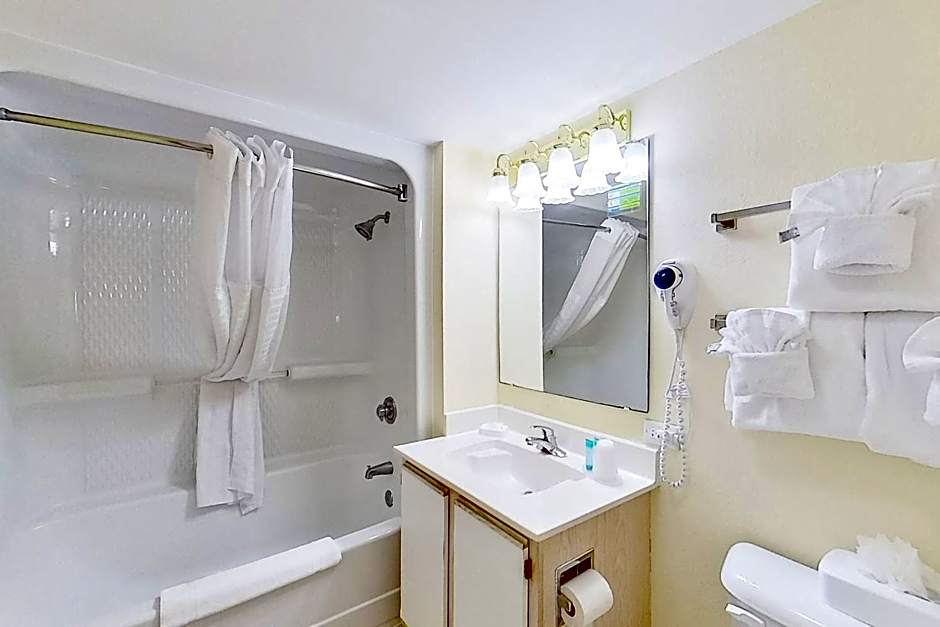 On-site dining options include Blue Bistro and SANDTRAP SPORTS BAR & GRILL, both serving American fare in a relaxed, beachy setting. These spots offer convenient dining without leaving the property. A fitness center keeps workout routines on track, while meeting/banquet facilities and a business center support events and work. Payment is handled by Mastercard, Discover, or Visa; cash is not accepted. With a golf course on the premises, golfers can pair a round with a seaside escape.