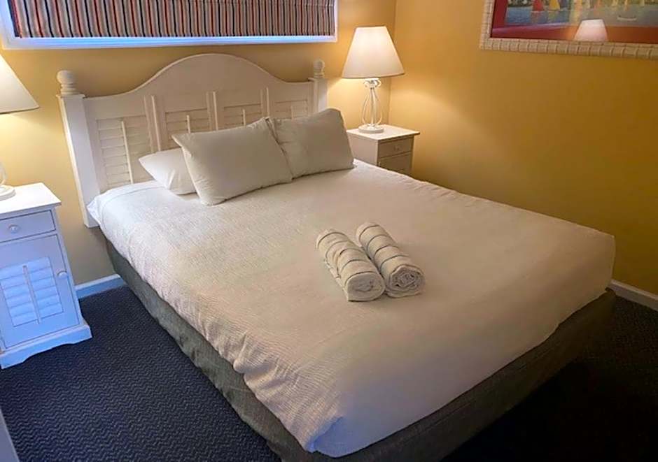 The one-bedroom apartment had plenty of room with a kitchen area, pull-out sofa bed, and dining table and chairs in the living area, as well as a full bathroom and a separate bedroom with queen bed Since my room was on the first floor, it was easily accessible from the parking lot. The front windows provided a nice view of the pool and the grass and dunes on the beach, which was only a short walk away. It enjoyed sitting out on the patio listening to the waves crashing on the beach. The staff was friendly and helpful. The location was great -- right on the beach, near restaurants and stores. I also liked that the hotel has a tiki bar onsite -- next to the pools -- where you can purchase drinks and food; the staff there was very nice and friendly. I really enjoyed my stay at the Ocean Club Resort and would stay there again when I visit the area!