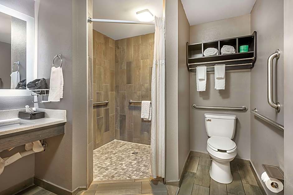 The Best Western Plus Spartanburg hotel offers various types of rooms, including Queen Rooms with Two Queen Beds (shower only) and King Rooms with either a roll-in shower for disability access or a regular shower. All rooms are non-smoking and have a room size of 301 sqft. The Queen Rooms with Two Queen Beds and King Rooms can accommodate up to 4 adults and 3 children, while the regular King Rooms can accommodate 2 adults and 1 child.