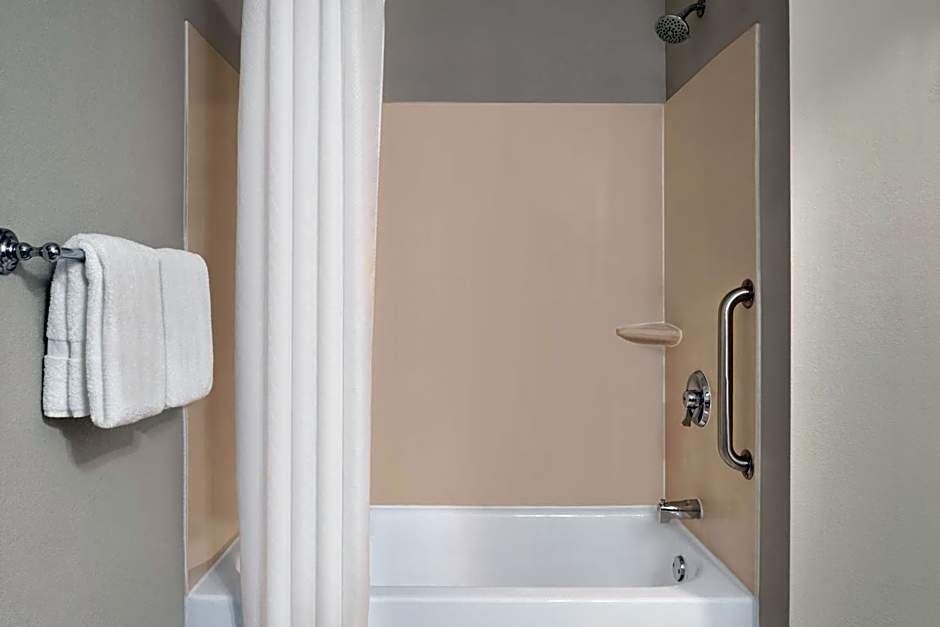 The hotel offers various types of rooms including extended stay queen and king rooms with kitchenettes, extended stay king suites with whirlpool and kitchenettes, king studio suites, king rooms, and queen rooms with two queen beds. All rooms are non-smoking and vary in occupancy, accommodating either 3 or 4 adults and up to 3 children. The bed sizes offered are either a king or two queen beds. Some rooms are dog-friendly and have disability access options.