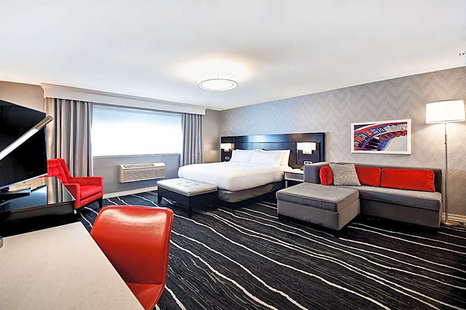 The room we booked was advertised having 1 king bed, 1 full bed and 1 sofa bed. But when we got there, we were given a room with a king bed and 1 sofa bed. We went to the front desk to clarify the issue. Receptionist was responsive but was quite rude. They told us that booking.com misadvertised the room and that they are not affiliated whatsoever with booking.com and that we should book directly with them the next time we decide to stay at Doubletree. She was helpful enough to get us a room with 2 queen beds.