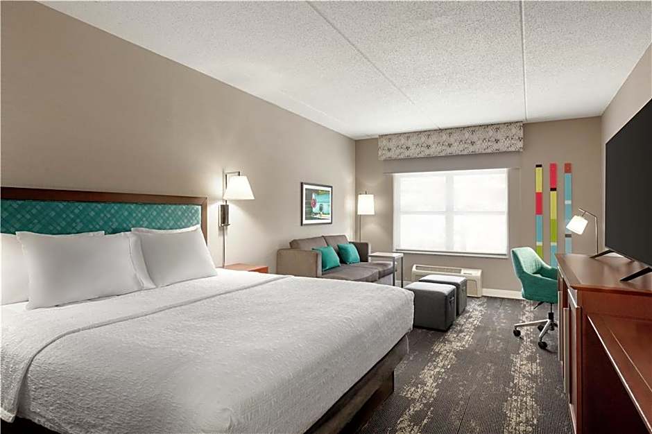 Now, let's talk about the fantastic room types available at the hotel. If you're looking for a spacious and luxurious option, consider the One-Bedroom Suite with Spa Bath. With a room size of 5382 square feet and accommodating up to 4 adults and 3 children, you'll have plenty of space to relax and unwind. If you prefer a king-sized bed, the King Room is a great choice, accommodating 3 adults and 2 children. And for larger groups, the Queen Room with Two Queen Beds can accommodate 5 adults and 4 children. Finally, the King Suite offers a comfortable stay for 4 adults and 3 children, with a king-sized bed and a sofa bed available. No matter which room type you choose, you can expect a comfortable and enjoyable stay at the Hampton Inn.